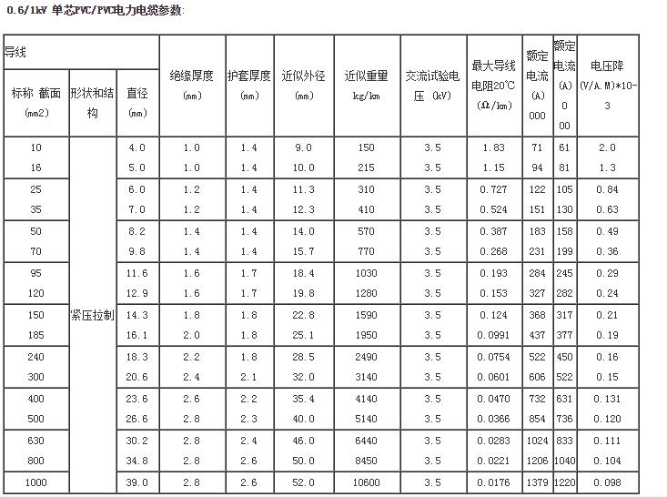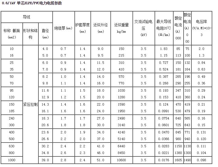 1.未作特別說明,電纜額定電壓(Uo/U)均為0.6/lkV銅導(dǎo)體單芯低壓電力電纜。